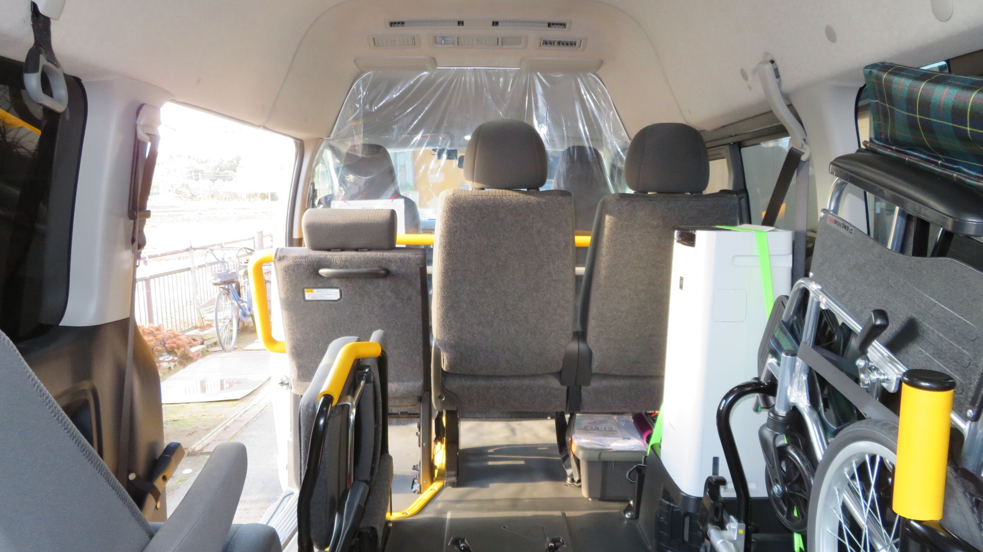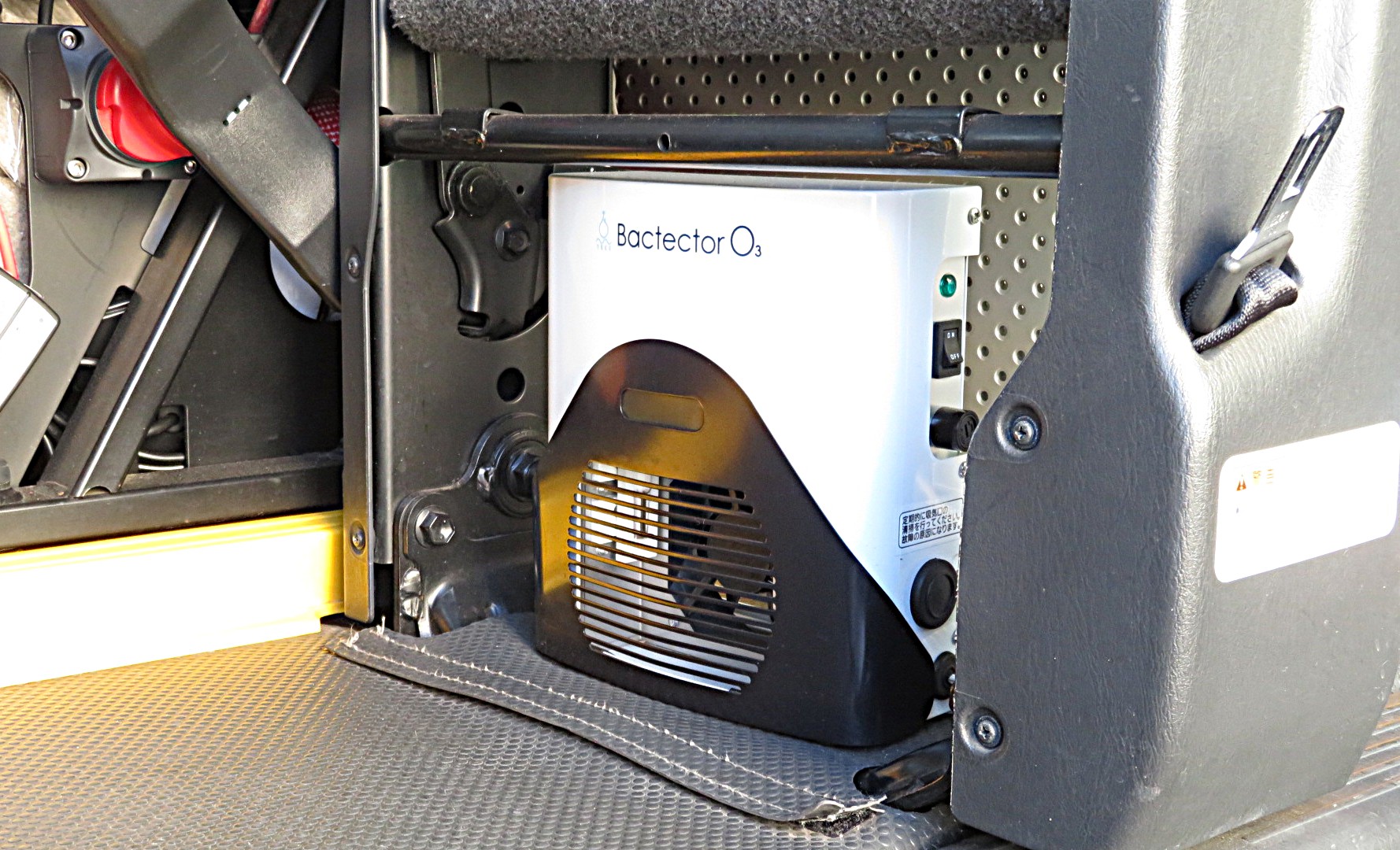 車両紹介 新型コロナウイルス・インフルエンザ感染対策 清掃・消毒 運転席・後部座席の仕切り等 加湿空気清浄機 プラズマクラスター25000搭載。 オゾン除菌・脱臭機 バクテクターO3 車両後部換気扇搭載