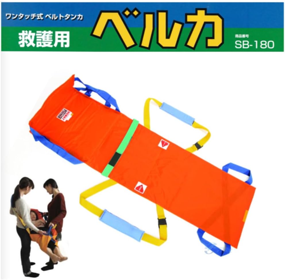救護用ベルカ担架は、傷病者の安全な搬送・搬移をサポートする折りたたみ式担架です。屋内外での救護・介護現場での緊急時対応に使用できます。